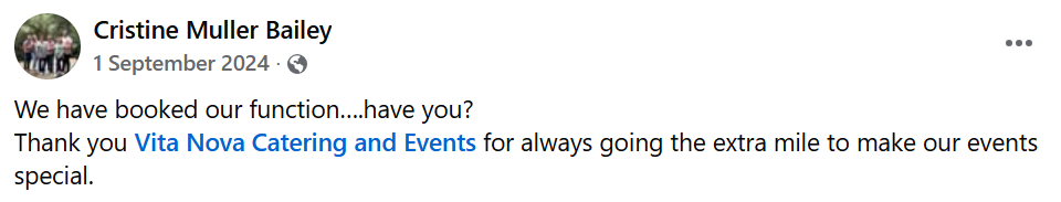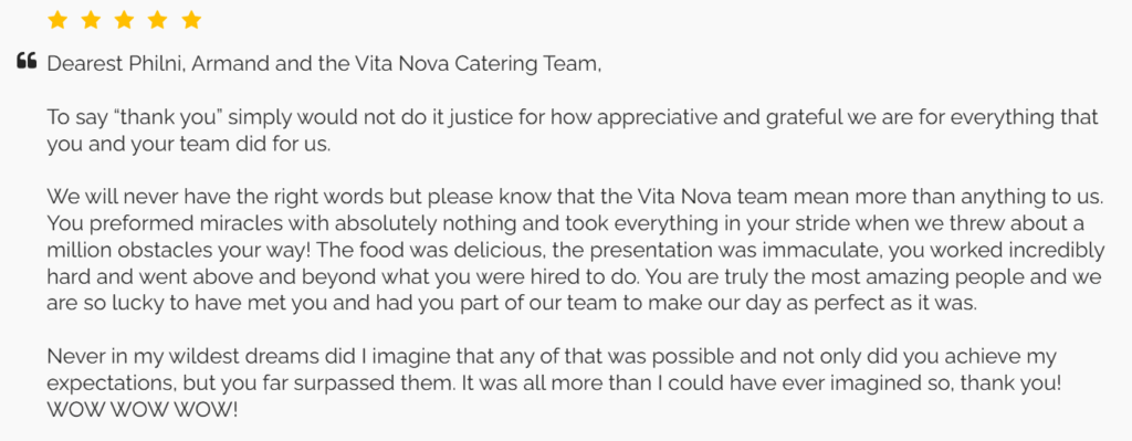 Vita Nova Management delivers unforgettable flavours and flawless service for weddings, corporate functions, and private celebrations.